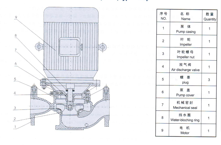 4、立式管道离心泵安装检修方便,无需拆动管路系统。水力模型设计先进,高效率,高节能。