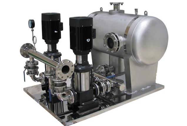 整套设备由稳流罐、真空抑制器、变频调速水泵机组、压力传感器、变频控制柜、倒流防止器(可选)、消毒装置(可选)、小流量保压罐(可选)等组成。从市政管网引来的进水管直接连接到稳流罐的进水口,稳流罐的出水口通过消毒装置后连接到加压泵组的进水管,加压机组的出水管与用户用水管连接,直接向用户管网供水。