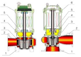 潜水污水泵采用独特结构和新型机械密封,能有效地输送含有固体物和长纤维。叶轮与传统叶轮相比,潜水污水泵叶轮采用单流道或双流道形式,它类似于一截面大小相同的弯管,具有非常好的过流性,配以合理的蜗室,使得该泵具有效率高、叶轮经动静平衡试验,使泵在运行中无振动。